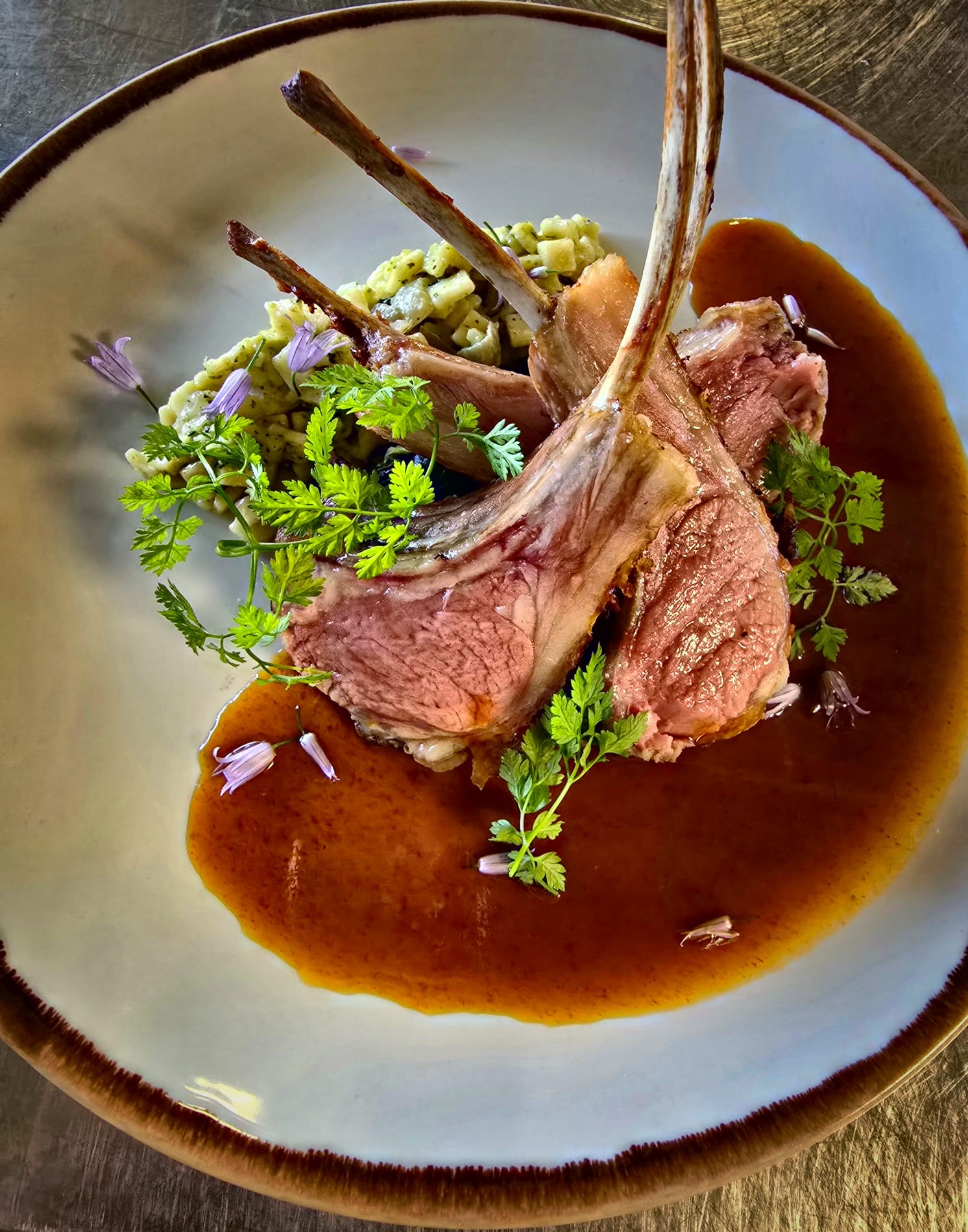 Souris d’agneau, jus au cumin, yaourt et perles de Savoie